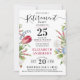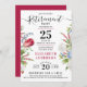 Este convite de festas de aposentadoria tem um design único com um tema floral com tulipa vermelha magenta, folhas verdes, botânica azul e branca | flores silvestres. Esta bela amostra de jardim é feita sobre um simples fundo branco. Quase se pode sentir o ar fresco de um campo de primavera. A parte de trás é um vermelho magenta elegante. Todos os textos são personalizáveis, você pode personalizá-los e fazer seu próprio convite chic para uma festa de aposentadoria. Também disponível em formato digital, solicite o seu agora!