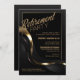 Celebre sua aposentadoria em estilo com nossa chic e sofisticada convite de festas preto. Com seu texto personalizável, você pode personalizar o convite. Este convite apresenta um belo quadro de ouro que inclui o texto, acrescentando um toque de luxo à sua ocasião especial. A design de fita de abstrato de ouro e cinza acrescenta um olhar moderno e na moda ao convite e cria um senso de fluxo e movimento. O design geral é subestimado, mas bonito, fazer perfeito para quem prefere uma estética mais refinada.