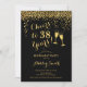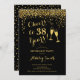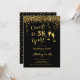 Convite de festas de aposentadoria elegante para homens ou mulheres. Convide cartão em ouro preto e brilhante falso. Apresenta a fonte do script de tipografia clássico, óculos de champanhe e confetti. Saúde para a aposentadoria! Personalize com seus próprios detalhes. Pode ser personalizado para mostrar a qualquer ano. Impressos convites Zazzle ou download instantâneo de modelo digital. Perfeito para uma comemoração de na moda.