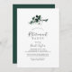 Este convite de festas de aposentadoria esmeralda é perfeito para um evento boho. A elegante, porém rústica, design apresenta folhas de cor verde-d-água escura e umeucalipto com uma moderna sensação de floresta boêmica.