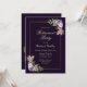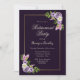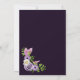 Um convite de festas de reforma floral roxo e lavanda com penas rosadas e roxas e delicadas folhas de samambaia verde.