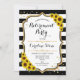 Convite de festas de aposentadoria russo. Design elegante com ouro falso brilhante. Possui girassóis, fontes de script, listras pretas e brancas e confetti. Perfeito para uma festa de aposentadoria na moda.