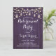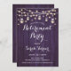Convite de festas de aposentadoria - Madeira Roxa Rústica. Design de estilo russo com lenha roxa e luzes de cordas de fadas.