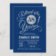 Convite de festas de aposentadoria em azul marinho e prata brilhante fraca. Fonte elegante do script de tipografia. Pode ser personalizado em qualquer ano. Envie-me uma mensagem se precisar de mais personalização.