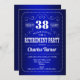 Convite de festas de reforma para mulheres ou homens. Design retro elegante em azul real e branco com letra de script de tipografia vintage. Pode ser personalizado a qualquer ano. Perfeito para comemoração de na moda