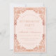 Esse convite de festas elegante, cor-de-rosa e rosa, de aposentadoria, com ar vintage, recomendado para uma mulher, tem um quadro de folha de ouro rosa ornamentado (faux) com decorações barrocas elegantes em fundo rosa-pincel. O nome está escrito em uma caligrafia elegante. Todo texto pode ser personalizado e tem uma cor rosa semelhante ao quadro ouro rosa. A safra, quadro de ornamentado, baseia-se numa antiga ligação francesa ao cobrir do livro, de Georges Mercier (1885-1939) - Madame de Maupin, por Teophile Gautier, edição de 1911, agora no dominio público.