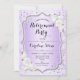 Convite de festas de reforma. Design floral em roxo com falso brilho de prata. Possui rosas brancas, fonte de script na moda e confetti. Perfeito para uma festa elegante.