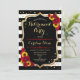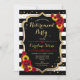 Convite de festas de reforma. Design floral elegante com girassóis e rosas vermelhas. Apresenta a fonte do script, o faux glitter gold, as listras pretas e brancas e o confetti. Perfeito para uma festa de aposentadoria na moda. Personalize com seus próprios detalhes.