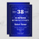 Convite de festas de reforma surpresa para mulheres ou homens. Design retro elegante em azul real e branco com letra de script de tipografia vintage. Pode ser personalizado a qualquer ano. Perfeito para uma comemoração de na moda. Impressos convites Zazzle ou download instantâneo de modelo digital.