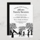 Convite de festas personalizado de reunião de família com um fundo branco que pode ser mudado para qualquer cor, silhuetas de pessoas que se divirtam, árvores e um modelo de reunião de família que é fácil de personalizar.