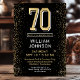 Este fabuloso convite de festas de surpresa de 70, preto e ouro, com o número 70 em ouro, com fontes modernas e lados dourados na frente e uma fabulosa foto em preto e branco no verso seria perfeito para pedir às pessoas que se juntem a vocês enquanto celebram o homem no aniversário de 70 da sua vida. É tradicional e clássico enquanto é fresco, moderno e contemporâneo. Para ver seus convites exclusivos, selecione "Personalizar este modelo" e digite suas informações. É super fácil!
