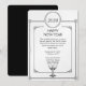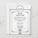 Este convite de festas simples mas elegante do ano novo tem um fundo branco com luz - riscas cinzentas. Na parte superior há um quadro preto do círculo por o ano - personalize-o por o ano onde você está comemorando. Há um quadro extravagante dobro a ajustar-se fora de seu texto e de dois vidros cruzados na parte inferior. No centro no preto estão seus detalhes do partido - apenas preencha-o e obtenha-o pronto para soar no ano novo no estilo.