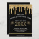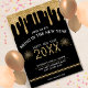 Convite de festas do feliz ano novo de gotejamento preto e dourado. Personalize-o alterando o ano e adicionando os detalhes do local da parte. Excelente para uma festa ou evento de véspera de ano novo.