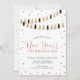 Celebre a estação com esta convite de festas Véspera de ano novo. Este design apresenta um confetti rosa dourado e uma faixa de tassel em preto, ouro e rosa dourado. Este convite é perfeito para uma festa moderna de Ano Novo.