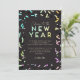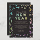 Jogue um Dia do ano novo ou festa de Ano Novo com este convite de festas de confete moderno. Ele apresenta confete espalhado em texturas iridescentes e cores do arco-íris. O texto "aplaude o Ano Novo" não é editável, mas o resto do texto é. A parte traseira da placa também pode ser personalizada.