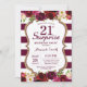Convite de festas floral do aniversário de 21 anos da surpresa de Borgonha para mulheres. A festa de aniversário vermelha e Dourado de Borgonha convida. Brilho Dourado. Flor floral da aguarela de Borgonha. Borgonha e listras brancas. 13o 15o 16o 18o 20o 2ø 30o 40th 50th 60th 90 100th do 80 do 70, algumas idades. Digitas Printable. Para uma personalização mais adicional, clique por favor "personalizam-no" botão e usam-nos nossa ferramenta de design para alterar este modelo.