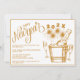 O convite de festas de Ano Novo Festivo (qualquer ano!) apresenta um Feliz ano novo com letras grandes no canto superior esquerdo do cartão, enquanto todo o lado direito guarda um balde de gelo com garrafa de champanhe, quatro faíscas saindo dos cubos de gelo com números para o ano (completamente editáveis por você) no topo de cada um, e dois copos de champanhe em cada lado do balde de gelo. Indicações para o seu evento preencha o convite na parte inferior esquerda. Dourada fonte colorida e design a branco, embora você possa adicionar uma cor ao plano de fundo se desejar.