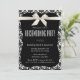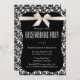 Convites de festas de aquecimento doméstico clássicos Black & White Damask. Mais designs de festas de limpeza de casa.