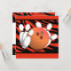 Celebrar aniversários ou qualquer ocasião divertida com uma festa de boliche. Personalize o texto deste divertido convite de festas laranja e zebra listrados.