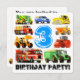 Nove caminhões coloridos cercam um excelente grande número 3! Adicione sua própria idade! Uma batedeira de concreto verde, uma escavadora amarela, um caminhão de lixo, um trator de fazendeiro, um caminhão de bombeiros vermelho brilhante e uma escavadora amarela. Crianças adoram veículos de construção e caminhões monstros! Perfeito para o seu caminhão de bombeiros, escavador, caminhão ou trator louco, filho de 3 anos ou neto... Festa de aniversário de 3 anos.