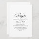 Este convite de festas moderno de celebração de vamos de caligrafia é perfeito para uma festa de noivado rústica, festa de solteira, aposentadoria, graduação, casamento após festa ou qualquer evento ou festa. O design simples e elegante apresenta a tipografia de scripts clássicos e ricos em preto e branco.
