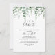 Este convite de festas minimalista de celebração do eucalipto é perfeito para uma festa de noivado, festa de solteira, aposentadoria, graduação, casamento após festa ou qualquer evento ou festa modernos. A design apresenta galhos e folhas botânicas elegantes e desenhadas a aquarela e desenhadas à mão.