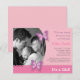 Uma borboleta representa a benevolência e a elegância. Este convite elegante e elegante do chá de fraldas da borboleta é perfeito para que os convidados de convite comemorem a chegada do bebé. O convite tem duas borboletas roxas vibrar aproximadamente com. Platette da cor do rosa e do roxo. Personalize com a foto do bebé.