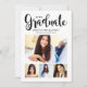O cartão de anúncio de graduação e o convite de festas apresentam apenas "Formando" em um roteiro de caligrafia com uma moderna colagem de fotos de quatro (4) fotos do formando. O design de placa de dois lados inclui o texto da festa de formatura "Celebrar Vamos" e detalhes na parte traseira. Design clássico preto e branco.