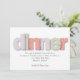 Este convite de festas moderno simples do comensal faz o a maioria da tipografia. O comensal da palavra é imprimido na parte superior em grandes letras em um esquema de cores pastel moderno - roxo da lavanda, verde da hortelã, e rosa do melão. Nas duas letras N - há um esboço de uma faca e de uma forquilha. Seu texto feito sob encomenda vai abaixo no preto. Todos os elementos são imprimidos em nossos produtos de alta qualidade, eles não incluem nenhuns elementos reais do ouro, das jóias, da gravação, ou o outro de matéria têxtil. Todo o design é as expressões notáveis dos direitos reservados, Inc. Todos os direitos reservados.