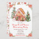 Esta elegante e festiva convite de festas decorativa de pães-de-gengiva apresenta uma casa de pão-de-gengala e belas flores vermelhas de poinsettia. O texto combina o script manuscrito e as fontes sans serif para uma aparência na moda e moderna. O boneco de neve, pinheiro decorado e coroa de férias adicionam um toque festivo. Isto é perfeito para festas de Natal.