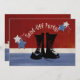 Boots no chão. Militares personalizáveis enviam uma festa de implantação com estrelas brancas e azuis patrióticas vermelhas e botas de combate em um fundo patriótico aflita. Adicione seu dentro de detalhes. Celebre seu soldado com este convite militar, e melhores votos.