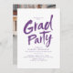 Convite para design de Graduação de script de pincel moderno em roxo e branco, com foto atrás, simples e exclusiva. Personalize-o com suas próprias fotos e informações de formando.