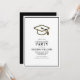 Este convite festa de formatura é simples. O preto e o ouro são modernos e o estilo minimalista é perfeito. Um boné de formatura está no topo. Veja a coordenação de itens no nosso compro, Encantado Finch.