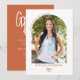 Celebre o marco do seu formando em estilo com este elegante Convite de festas de Formando Terracotta de Arch de Script Moderno. Apresentando um layout de arco de tendências, um script manuscrito de chic moderno e uma foto personalizada, este design combina sofisticação com um toque pessoal. Perfeito para comemorações de segundos graus ou formandos, este convite dá o tom de um evento inesquecível com a família e os amigos. Personalize com o ano de aula do seu formando, o nome e os detalhes da festa em uma laranja brilhante vibrante. Uma escolha na moda para festas de formatura, comemorações de casa aberta ou reuniões virtuais.