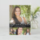 Convite de festa de formatura moderno com 5 fotos (4 na frente e 1 na parte traseira) com um design de título de FORMANDO de tipografia manuscrito de tendência, acentuado com um boné de formatura ou quadro-negro em branco contra um fundo preto editável, você pode mudar para uma cor da escola, uma cor para coordenar com suas fotos ou uma cor favorita. A parte traseira inclui os detalhes do seu convite de festas personalizado. ASSISTÊNCIA: para obter ajuda com a modificação ou personalização do design, alteração de cor, transferência do design para outro produto ou você gostaria de coordenar itens, entre em contato com o designer ANTES DE ENCOMENDAR através da guia MENSAGEM de bate-papo Zazzle ou envie um email para makeitaboutyoustore@gmail.com.