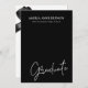 Um simples script branco na moda elegante, coloca sobre um fundo preto clássico, e ao redor da sua foto de formando. Apresentando um arco preto maravilhoso aparando a parte de trás deste convite de festa de formatura de segundo grau. Também perfeito para a sua classe de formando universitário de 2025! Adicione sua própria foto e outros detalhes da festa seguindo o link "Personalizar". Se quiser assistência, por favor sinta-se à vontade para me contactar através de uma mensagem aqui neste site ou por correio eletrônico no endereço susanmingaydesigns@gmail.com