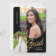 Convide amigos e familiares para o seu "Partido Formando" com o convite moderno, de 2 fotos, preto e ouro. O design apresenta fotos com uma borda arquivada. O texto personalizado, no verso, permite que você personalize com os detalhes do seu partido.