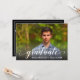 Sua foto, seu nome e ano de classe na frente com a palavra "formando" e a palavra "comemorar" nas costas em QUALQUER COR. CORRESPONDENTE a itens na nossa coleção.