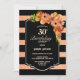 Convite de festas aniversário de 30 anos floral de coral brilhante preto e falso.