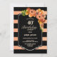 Convite de festas aniversário de 40 anos floral de coral brilhante preto e falso.