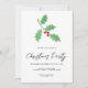 Convide familiares e amigos para a sua festa de Natal com este convite festivo moderno e simples. É decorada com coloração aquosa, holly verde, bagas vermelhas e tipografia com script de na moda. Facilmente personalizável. Original Watercolor © Michele Davies.