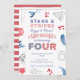 Um design de convite de festas de pizza de 4 anos muito patriótico, adequado para um menino ou menina ou mesmo gêmeos.