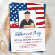 Convites de festas modernos da Polícia de Bandeira Americana. Este convites de festas de Bandeira Americano é perfeito para aposentadorias militares, aposentadoria e polícia de oficiais da polícia, graduação militar. Personalize este convite da bandeira americana com seu evento, nome e detalhes da festa dos soldados. Veja nossa coleção para combinar presentes de aposentadoria militar, presentes de graduação militar, favoritos para festas e suprimentos. COPYRIGHT © 2021 Judy Burrows, Black Dog Art - Todos Os Direitos Reservados. Foto do Partido de Reforma da Polícia dos EUA Convite de Bandeira Americano