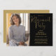 Este convite de festas de aposentadoria de guião preto e ouro elegante pode ser personalizado com todas as suas informações especiais de celebração e fotos. Projetado por Thisnotme©