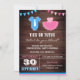 Entusiasmem seus hóspedes com este gênero fofo que revela o convite com roupas de bebê azuis com uma gravata fofinha e um tutu cor-de-rosa com tipografia moderna contra um fundo de madeira de celeiro. Basta adicionar os detalhes do seu evento neste modelo fácil de usar para torná-lo um convite de tipo único.