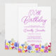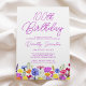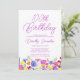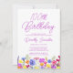 Uma bonito borda de flor silvestre decora o fundo deste convite de festas surpresa de aniversário de 100 anos adulto. Flores roxas, azuis, amarelas e alaranjadas criam um design colorido e feliz para celebrar esse aniversário marco. A caligrafia roxa moderna e simples acrescenta um toque de tendência para mantê-la fresca. O fluxo de letras aberto e livre de atalhos se coordena perfeitamente com as margaridas e as botas. Este 100º convite de aniversário vai dar o tom perfeito, quando os seus convidados o receberem. Escolha encantadora para primavera ou festa de aniversário de verão. Este elemento faz parte da Coleção de Flores Roxas Bonito. Use-o para criar facilmente a suíte perfeita de convites para 100 anos e o tema da festa.