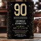 Este fabuloso convite de festas de surpresa de 90, preto e ouro, com o número 90 em ouro, com fontes modernas e lados de ouro brilhantes, seria perfeito para pedir às pessoas que se juntem a vocês enquanto celebram o homem no aniversário de 90 da sua vida. É tradicional e clássico enquanto é fresco, moderno e contemporâneo. Para ver seus convites exclusivos, selecione "Personalizar este modelo" e digite suas informações. É super fácil!