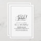 Este convite de festas de surpresa minimalista é perfeito para um evento moderno. A design romântica moderna apresenta a tipografia clássica, em preto e branco, emparelhada com uma caligrafia rústica, mas elegante, com estilo voltado para a mão. Personalizável em qualquer cor. Mantenha o design simples e elegante, como está, ou personalize-o adicionando seus próprios gráficos e trabalhos de arte. Este convite pode ser usado para um aniversário, aposentadoria ou qualquer festa surpresa.