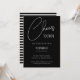 Saúde ao Ano Novo! Convite de festas de Véspera de ano novo moderna em preto sólido com fonte de script manuscrita, texto totalmente personalizável e um backer com striping em preto e branco.