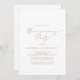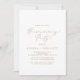 Este delicado convite de festas de caligrafia dourada é perfeito para um evento moderno. A design romântica minimalista apresenta uma magnífica e elegante tipografia amarela ouro champanhe num fundo branco com um aspecto simples e limpo.